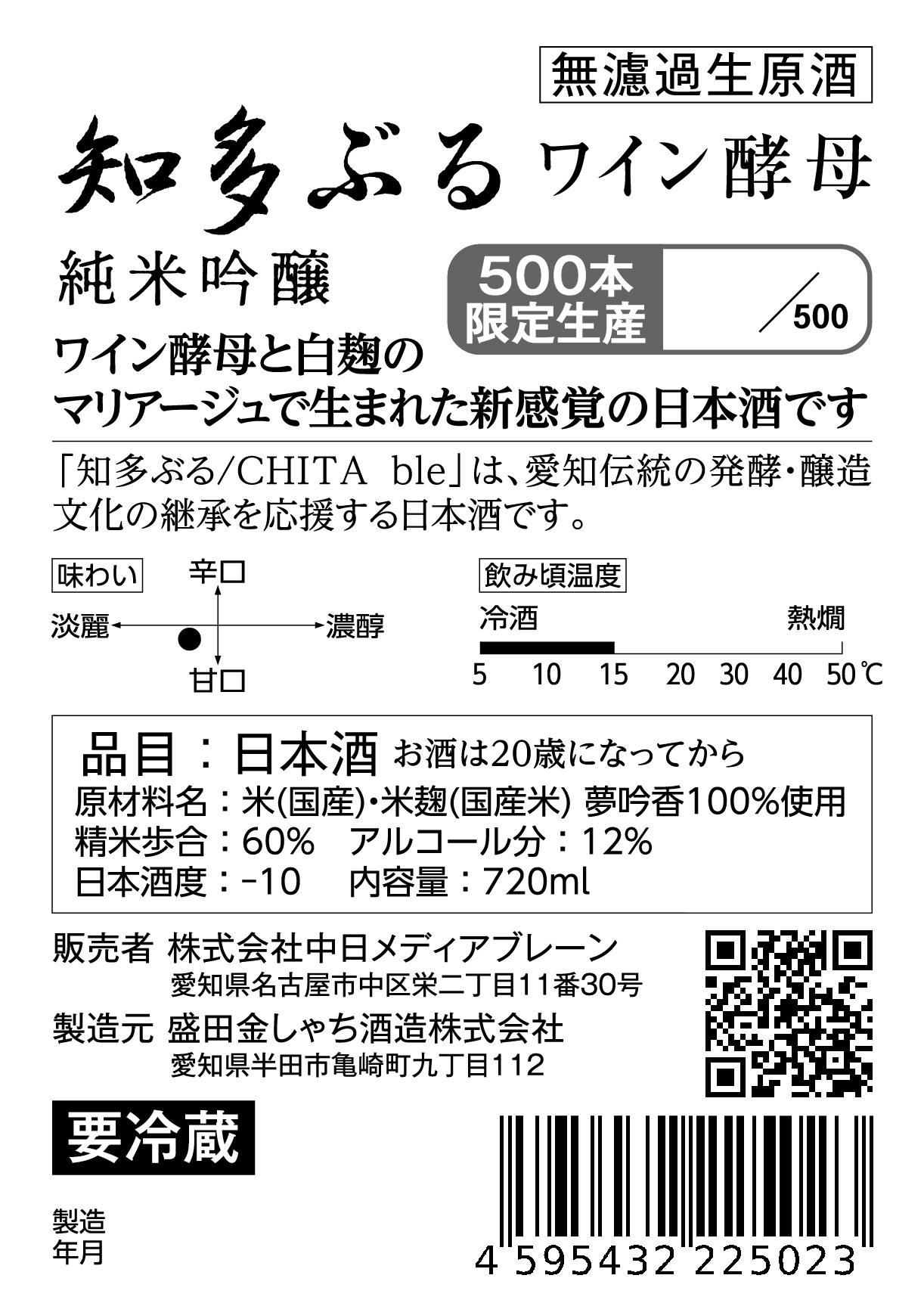 知多ぶる/CHITA ble 純米吟醸 ワイン酵母 無濾過生原酒